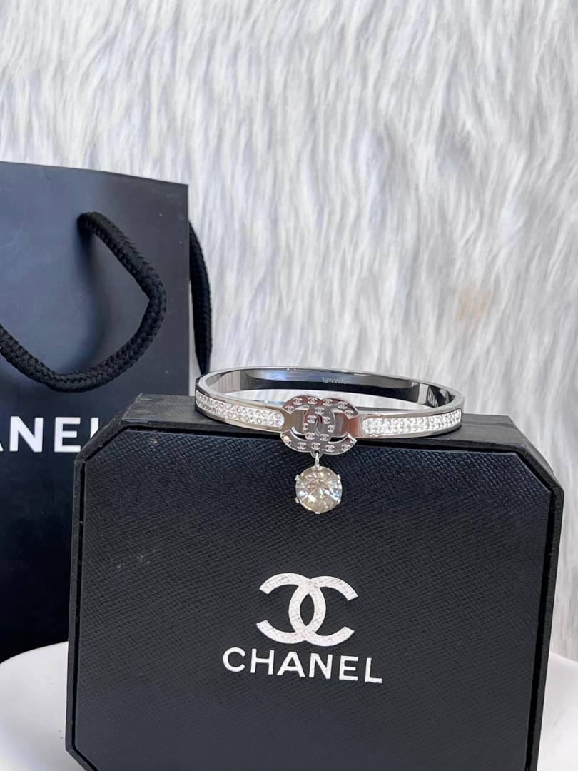 • Chanel_Small_Front_Logo_Silver_Bracelet_For_Her_With_Original_Box